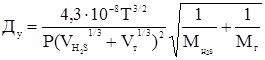 Коэффициент диффузии Н2S в газовой фазе можно рассчитать по уравнению: