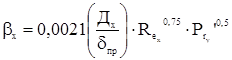 Коэффициент массоотдачи в жидкой фазе βх находят из обобщенного уравнения, пригодного как для регулярных (в том числе и хордовых), так и для неупорядоченных насадок /5, 20/.