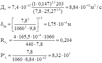 Расчет коэффициентов массоотдачи