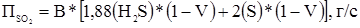 где В* – расход газа, м3/с; (Н2S), (S)* – концентрация сероводорода и сероорганических соединений в газе (в г/м3) и равны соответственно 2,84 и 0,05; V – коэффициент полноты сгорания газа, принят равным 0,9984.
