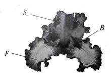 В цветке ириса нельзя выделить чашелистики и лепестки - он состоит из шести листочков (долей) околоцветника, расположенных двумя ярусами: три наружных доли опущены вниз и поэтому в зарубежной литературе называются фоллсами (от английского слова falls - водопады), а три внутренние образуют верхний ярус и называются стандартами (от английского слова standard — знамя).