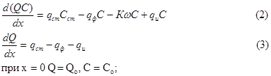 qe, qj, qисп – расходы, приходящие на единицу длины реки соответственно притока с водосборной площади, сбрасываемых в реку сточные воды, на испарение;