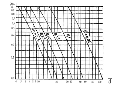Рисунок 1 - Номограмма для определения диаметра струи в расчетном сечении.