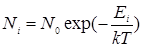Распределение молекул по колебательным уровням как невозбужденного, так и возбужденного электронного состояния описывается формулой Больцмана: