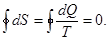 Если обратимый процесс характеризуется замкнутым циклом, то очевидно изменение энтропии и контурный интеграл от приведенной теплоты в этом случае равны нулю (рис.1):