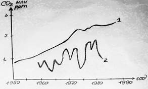 Ученые, прослеживая выбросы углекислого газа, давно заметили, что в атмосферу попадает всегда разное количество газа, даже при одинаковых выбросах (график 2).